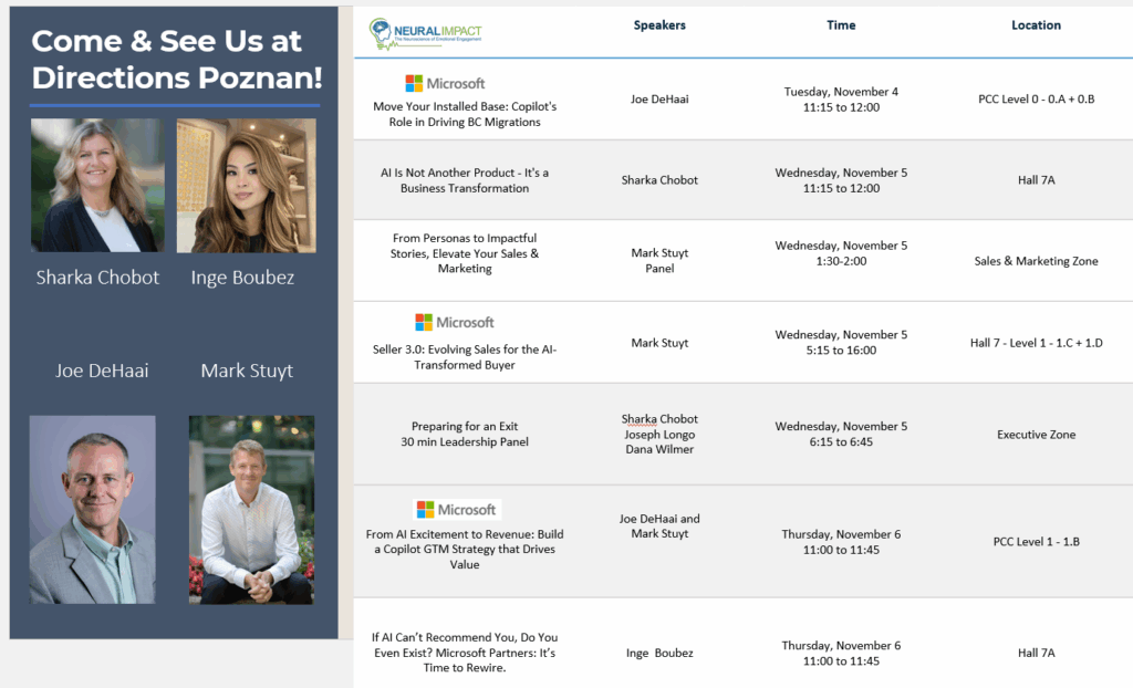 We’ll walk through Neural Impact’s neuroscience-based approach to differentiation, buyer psychology, and emotional engagement, plus show how to build packaged Copilot services that are clear, scalable, and aligned with what customers are ready to buy.